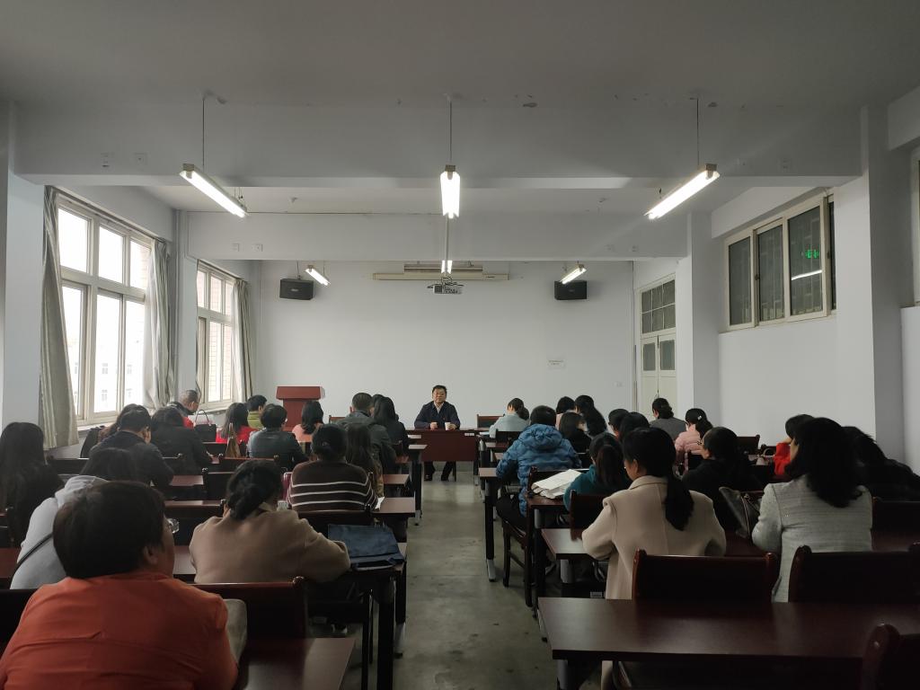 10月15日下午,党委常委、副校长汪咏国到正规滚球app平台官网作辅导报告。正规滚球app平台官网全体领导班子成员和教职工参加报告会。