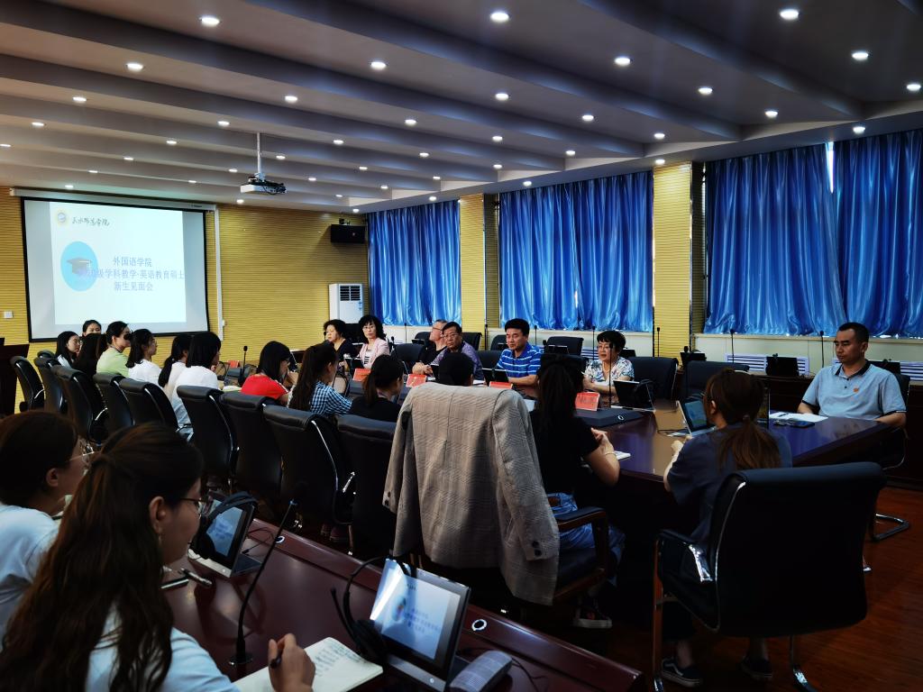 9月2日,正规滚球app平台官网在学院会议室召开了2020级英语教育硕士新生见面会。学院全体领导、研究生导师、研究生秘书以及2020级全体英语教育硕士参加了会议。会议由姜炳生院长主持。他首先代表学院向2020级新进学子表示了热烈欢迎,向新生详细介绍了学院的基本情况,并殷切的希望大家能够充分地利用好时间,努力学习,不负韶华,在新的起点取得新的成绩,使学业与梦想齐飞,健康与生活同悦。为了加深导师和新生研究生之间的相互了解,导师和新生研究生们分别进行了自我介绍。同学们介绍了自己的家乡、本科就读的学校、兴趣爱好以及研究生期间的学习规划等情况。大部分同学都表示将来有志从事基础英语教学,为基础英语教学贡献自己的力量。同学们的自我介绍方式各异,生动活泼,她们自信、乐观的态度赢得了在座领导和导师们的阵阵掌声。接下来导师也对自己的工作经历、研究领域以及承担的主要课程向同学们做了简要说明。见面会的最后由李旭明书记向新生们详细解读学科教学(英语)专业学位研究生培养方案。他首先对正规滚球app平台官网硕士专业发展历程、师资力量以及本专业发展前景进行了简单说明,接着就专业培养方案、学习年限、课程设置、培养方式、实践教学的安排以及学位论文撰写这几个方面作了详细解读,重点强调了实践教学对教育硕士专业学生的重要性,同时希望大家要树立明确的目标,珍惜时间,充分利用学校的师资及图书资源,多与老师、同学讨论、交流,能够度过充实快乐的研究生生活!
