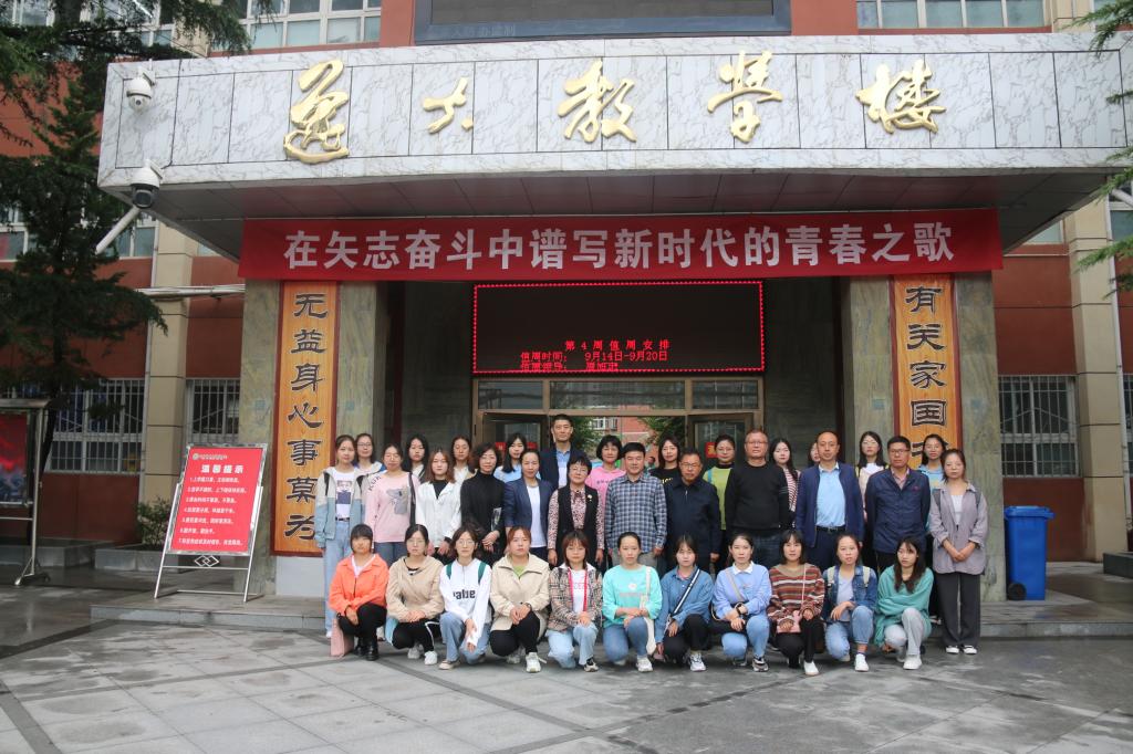 9月14日,滚球app官网正规滚球app平台官网23名学生赴天水市逸夫实验中学实习,姜炳生院长、马金海副院长和英语系系主任刘彦峰老师带领学生与天水市逸夫实验中学校长、教导处主任、各年级备课组长进行了工作接洽,召开了教育实习工作安排会,会议由逸夫中学计卫珍校长主持。