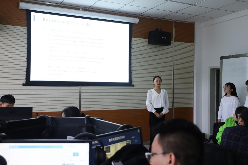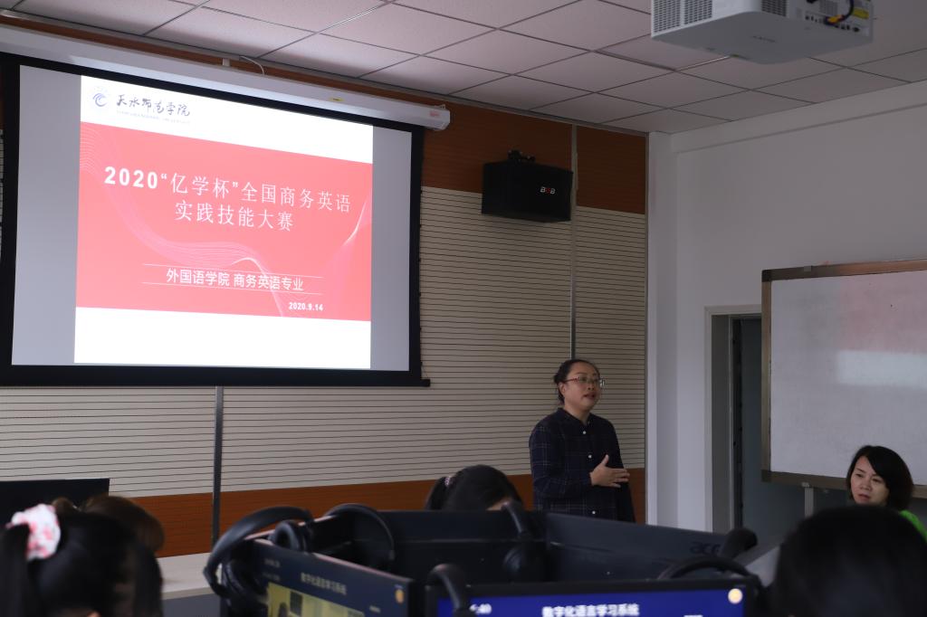为加快培养具有国际视野、通晓国际规则、能够参与国际事务和竞争的国际化人才,巩固高校大学英语和英语专业教育教学改革成果,展现新时代高校学生的中国情怀和国际视野,正规滚球app平台官网商务英语专业于9月14日举办了2020“亿学杯”全国商务英语实践技能大赛的选拔赛。副院长马金海,商务英语系主任,任课教师,以及2019级商务英语一班的全体同学观摩了本次比赛。