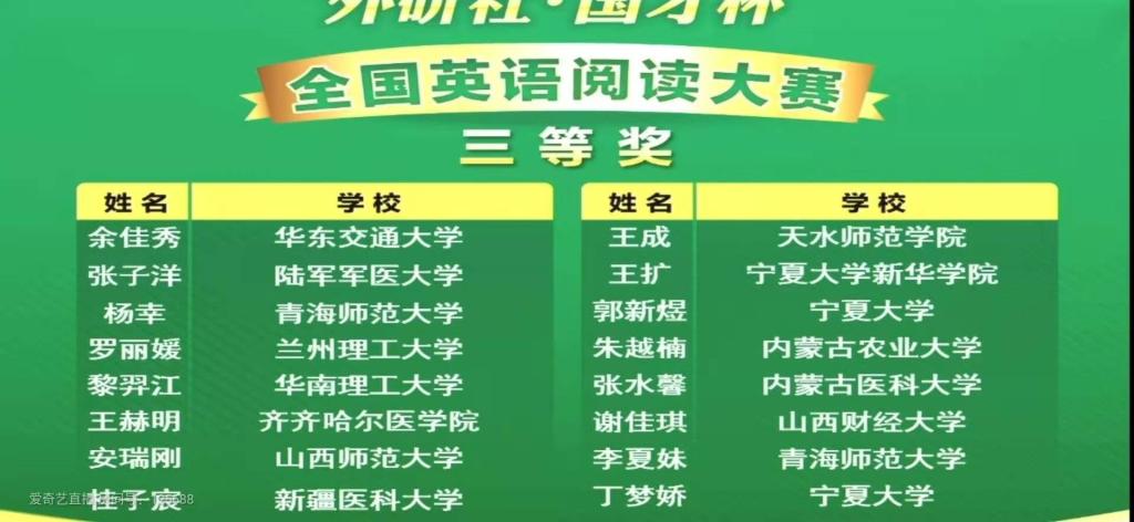 12月20日,2020“外研社·国才杯”全国英语写作、阅读大赛颁奖仪式在北京举行,滚球app官网正规滚球app平台官网英语专业17级一班的王成同学荣获全国阅读大赛总决赛三等奖。