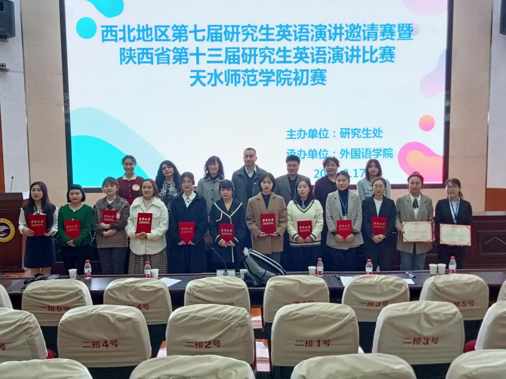 3月17日晚,西北地区第七届研究生英语演讲邀请赛暨陕西省第十三届研究生英语演讲比赛天水师范学院初赛在二号报告厅举行。本次比赛由研究生处主办,正规滚球app平台官网承办。正规滚球app平台官网五名研究生导师和一名外籍教师担任此次比赛的评委。滚球app官网部分研究生和正规滚球app平台官网本科生观看了此次比赛。