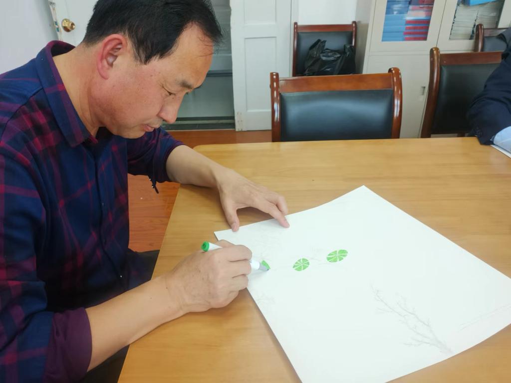 党总支成员们也纷纷拿起画笔,党总支书记司成林画下一片片绿色的荷叶,院长姜炳生在纸张上写下“廉洁自律”,党总支副书记袁荣勾勒出了代表廉洁的莲花,副院长杨江锋描绘出中国心,分团委书记董晓玫写下了自律的誓言。