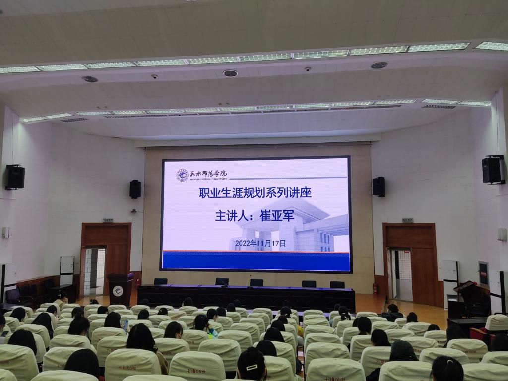 11月17日,天水师范学院职业生涯规划系列讲座来到正规滚球app平台官网,党委常委、统战部部长崔亚军为2022级新生作职业生涯规划讲座,22级新生带着对大学生活的迷茫和未来就业的困惑参加本次讲座。
