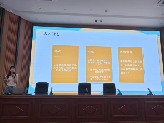 王悦同学于2023年年底参加天水市第一批人才引进,并成功签约了天水市一所高中。她给大家详细分享了她参加国考、选调以及人才引进等考试的经历,重点介绍了在人才引进的面试环节如何设计好一堂英语课。