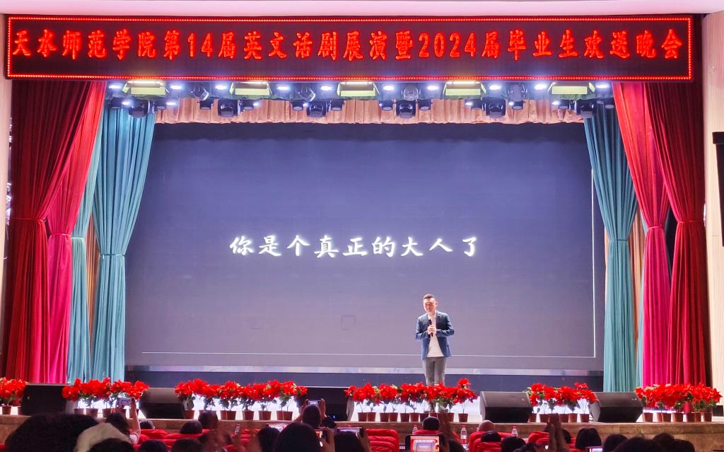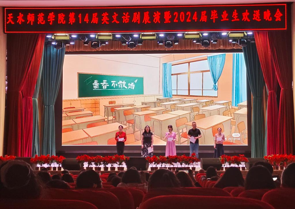 6月6日下午16时,正规滚球app平台官网在学校大礼堂成功举办“第十四届英文话剧展演暨2024届毕业晚会”,学院领导班子、2024届毕业班班主任、部分任课教师莅临晚会,正规滚球app平台官网全体本科生和研究生现场观看。