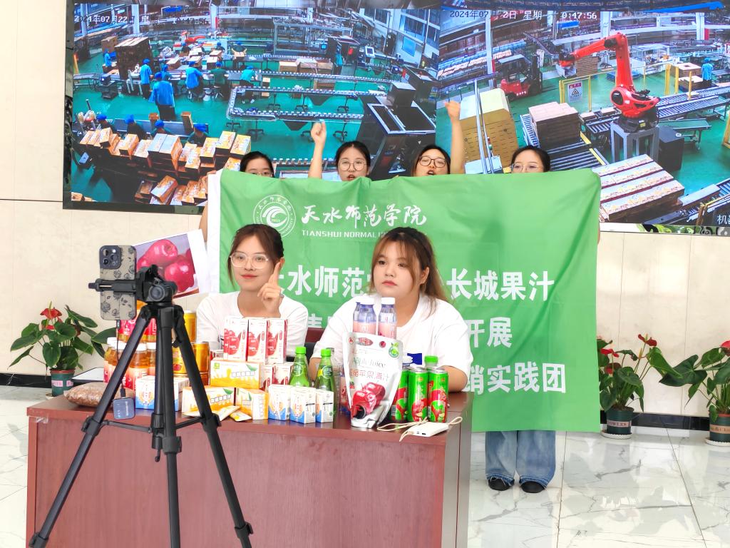 7月18日,正规滚球app平台官网11名青年学子以“助力乡村振兴,共谱发展新篇”为主题,联合天水长城果汁集团,开展校企合作,以直播的形式宣传和销售天水特产花牛苹果汁,让更多的人品尝花牛苹果的味道,书写文化和乡村发展与数字化线上营销新篇章。