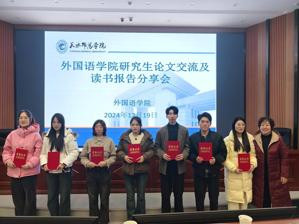 在读书报告分享环节,9位研究生挑选了涵盖英语学科发展前沿、英语教学法革新、语言学深度探索以及人工智能时代外语教育变革等领域的经典书籍进行分享。他们不仅详细阐述了书籍的核心内容与作者观点,更结合个人学术背景与实践经验,分享了独到的见解与深刻的感悟,展现了他们在阅读中的思考与收获。