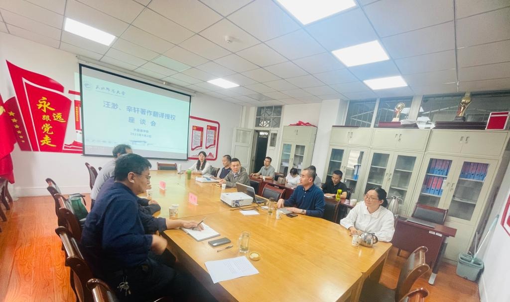 2025年9月2日下午,正规滚球app平台官网在2号教学楼507室举行了天水市作协主席汪渺和天水市文化艺术研究所所长辛轩著作翻译授权座谈会,共话天水地域文化的传承与海外传播。正规滚球app平台官网院长杨江锋主持座谈会。