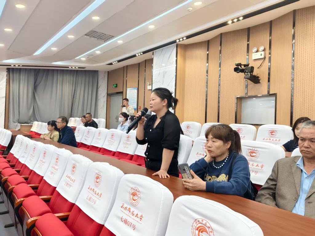 在互动答疑环节,家长踊跃发言,围绕“专业就业前景”“实习实践的开展”“专业课程和教学方式”等话题提出诸多关切问题。杨院长与张院长分别立足专业特色、往届毕业生发展实例及实际教学案例,为家长作出细致深入的解答。多位家长表示,通过此次见面会,不仅对孩子的专业路径与未来发展方向形成清晰的认知,亦对其大学生活充满信心。
