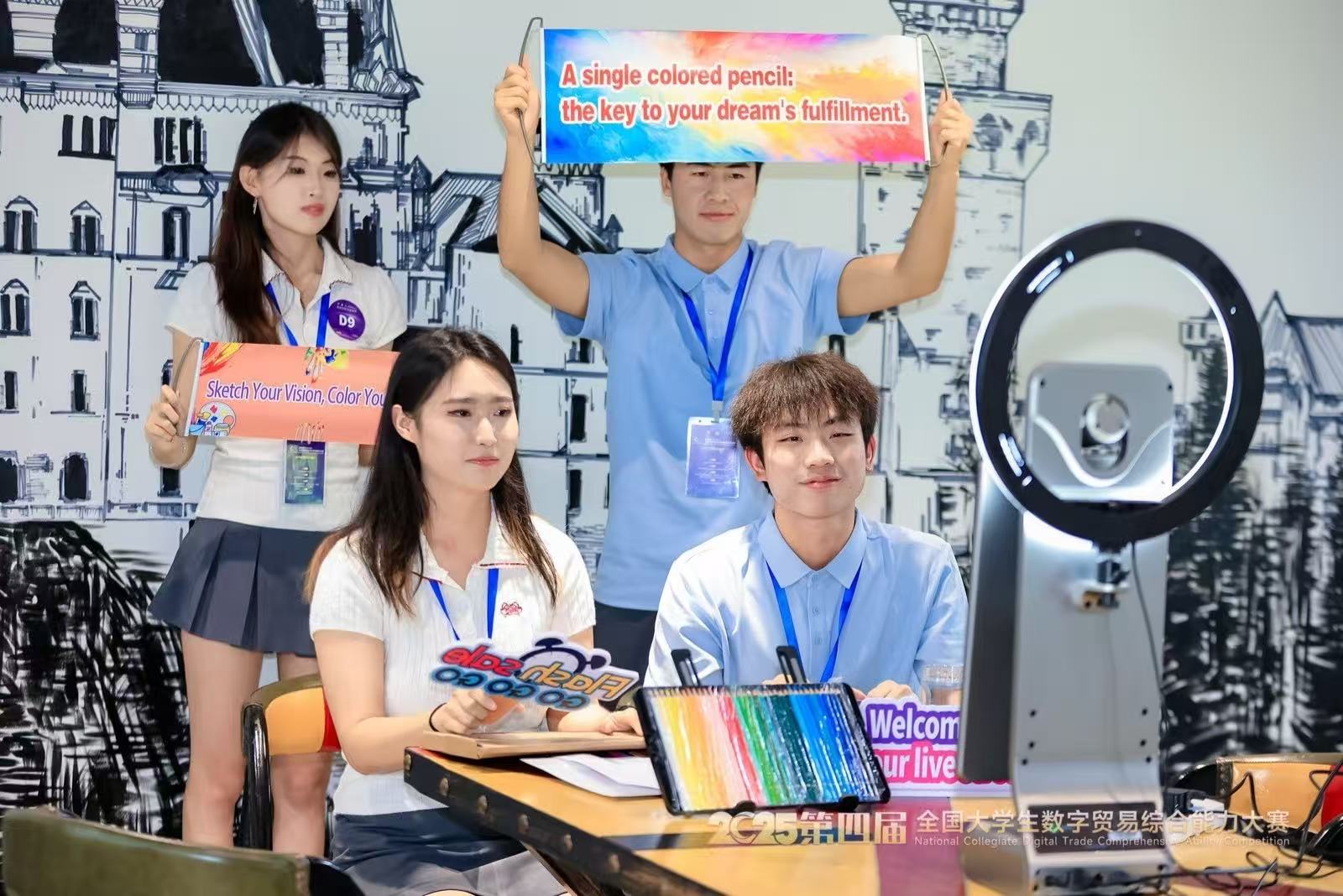 本次全国总决赛共分三个阶段,赛程紧凑、挑战升级。第一阶段为“Tik ToK美区直播”实战,全面检验选手的英语应用能力、跨文化沟通水平及对海外社交媒体平台规则的掌握程度;第二阶段聚焦“阿里巴巴国际站直播”,突出考察B2B场景下的商业推广与谈判能力;第三阶段为“线下直播”终极对决,队员们沉着冷静,以清晰的逻辑、流畅的表达和创新的直播策略完成综合考核,最终斩获佳绩。