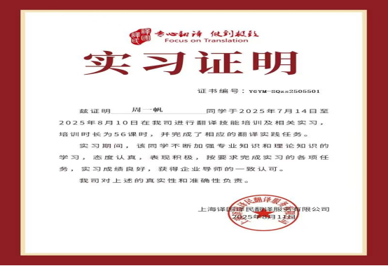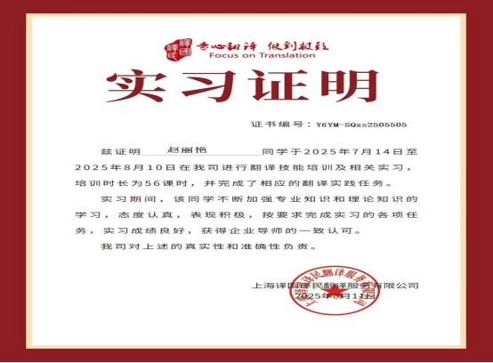 为主动应对这一趋势,正规滚球app平台官网积极拓展校企合作渠道,创新人才培养模式,积极推动人才培养与行业需求紧密对接,特积极组织学生参与由译国译民集团主办的“2025年暑假线上实习”项目,为学生提供了接触前沿翻译技术和行业实践的机会。通过参与该项目,帮助学生正确认识AI技术的工具属性,掌握智能时代语言服务新技能,深化对现代语言行业的认知,有效弥补在校学习与行业实践之间的差距。