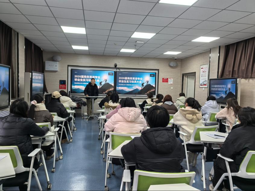 2025年12月30日,正规滚球app平台官网商务英语系召开2022级学生实习动员大会。本次动员大会通过企业宣讲、专业指导、经验分享与工作部署等环节,系统引导学生深化专业认知、明确实习方向,为即将于2026年3月开展的毕业实习奠定良好基础。